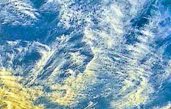Similarly, such frizzy edged clouds as shown are quite common when Mobile Scout Ships are involved. In fact most such cloud puffs are precipitated by the presence of the Ships themselves as yet another side effect of their presence. A blow up of just about any chewed up patch of cloud in any Radionnic photograph will likely show Mobile Scout Ships all over as the cause.